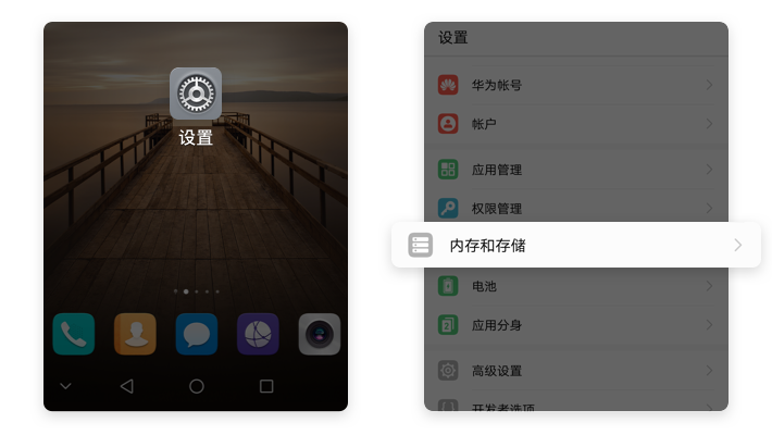 【设置】→【内存和存储】