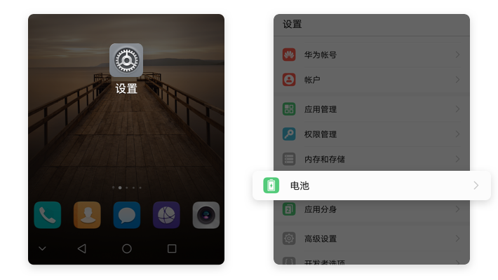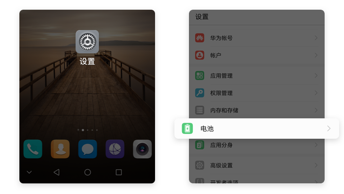 【设置】→【电池】