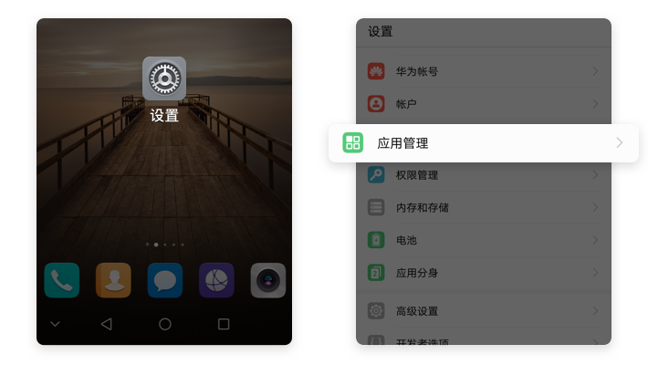 【设置】→【应用管理】