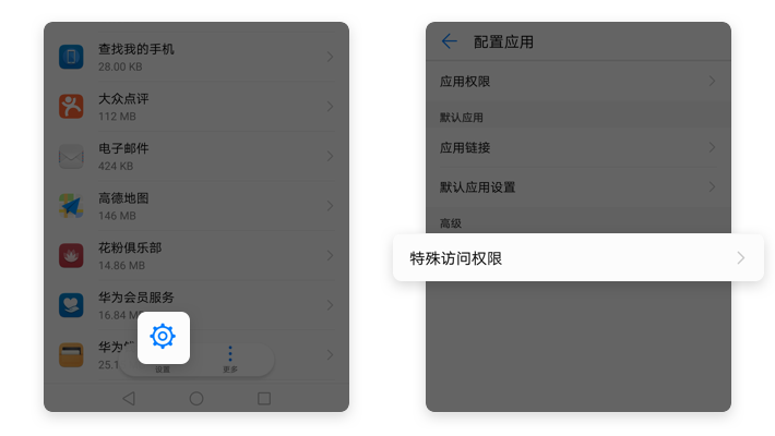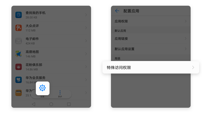 【应用管理】→【设置】→【特殊访问权限】