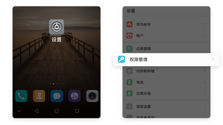 【设置】→【权限管理】