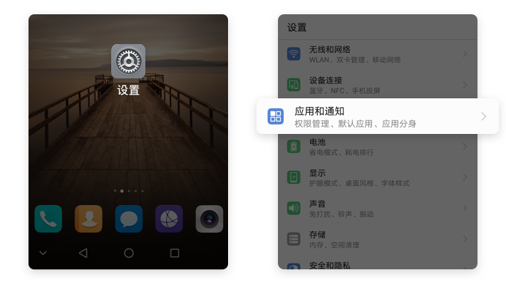 【设置】→【应用和通知】