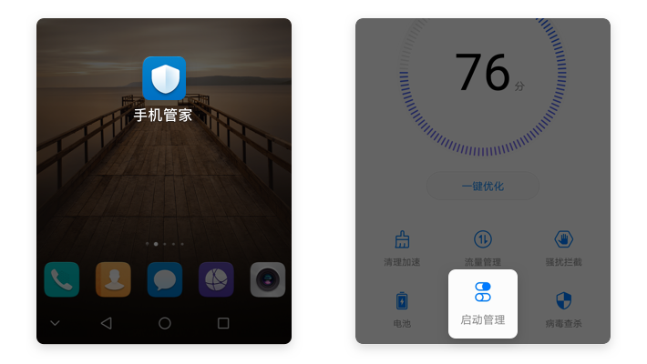 【手机管家】→【启动管理】