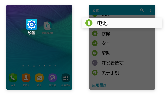 【设置】→【电池】