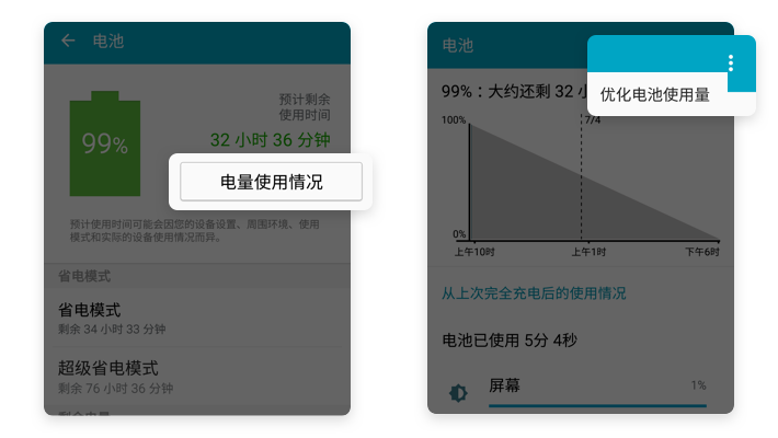 【电池】→【电量使用情况】→【右上角圆点】