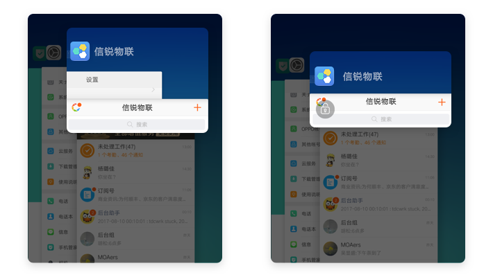 【菜单键】→ 下拉【信锐物联】→ 【信锐物联】已加锁