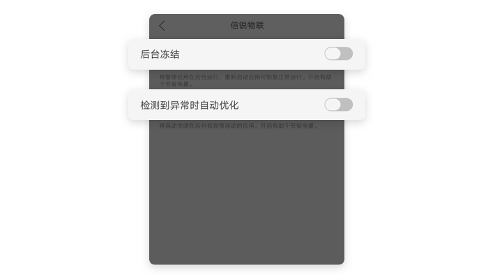 【信锐物联】→ 关闭【后台冻结】【检测到异常时自动优化】