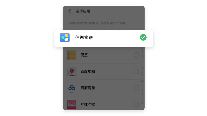 【极限省电模式应用程序】→ 选择【信锐物联】