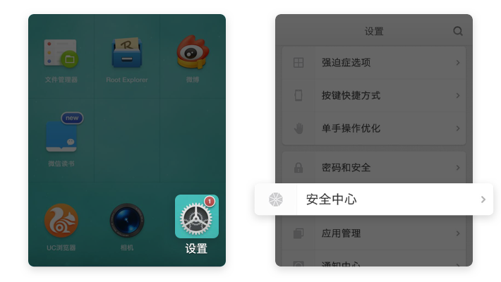 【设置】→【安全中心】
