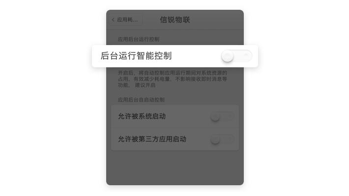 【信锐物联】→ 关闭【后台运行智能控制】